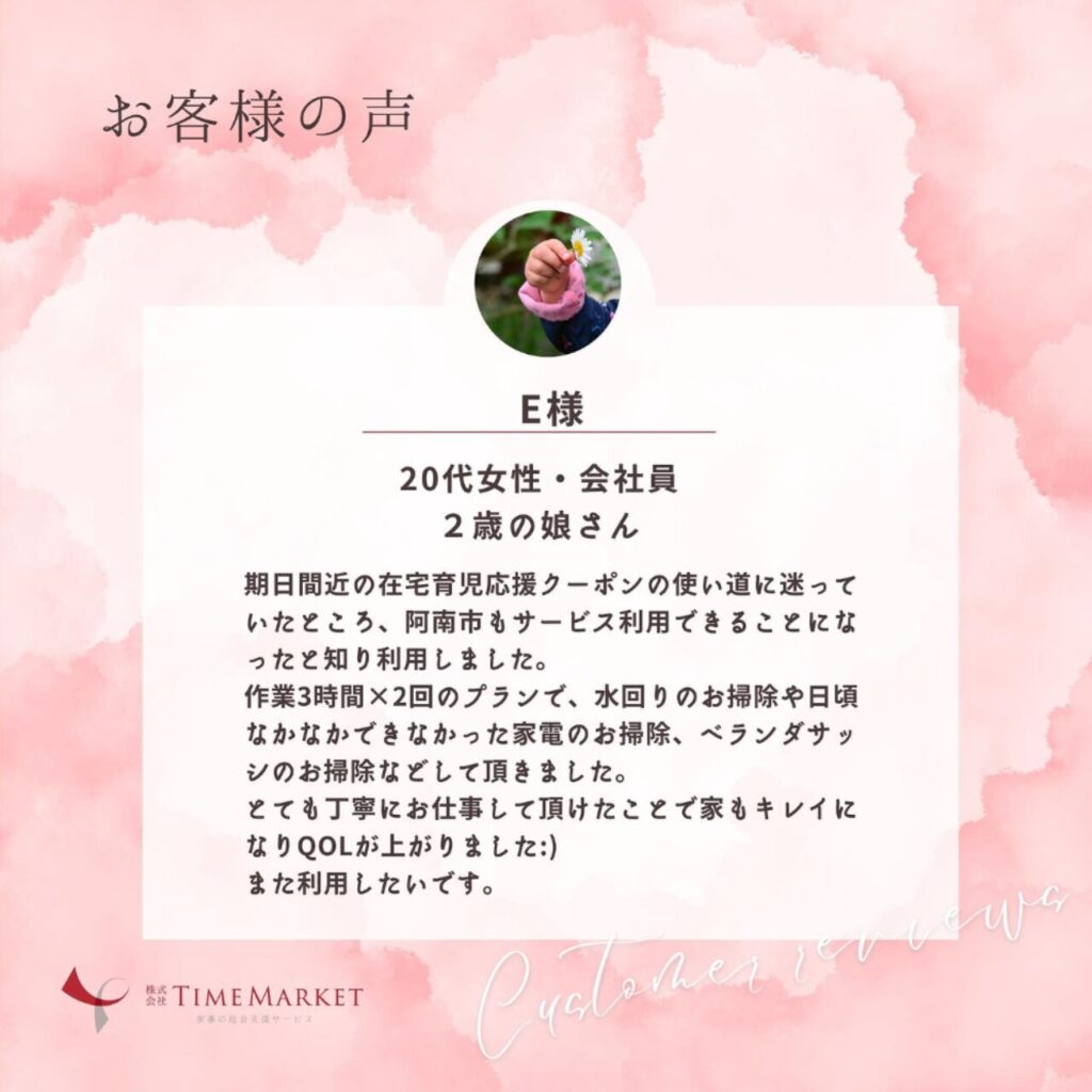 在宅育児クーポンをご活用いただいたお客様。
